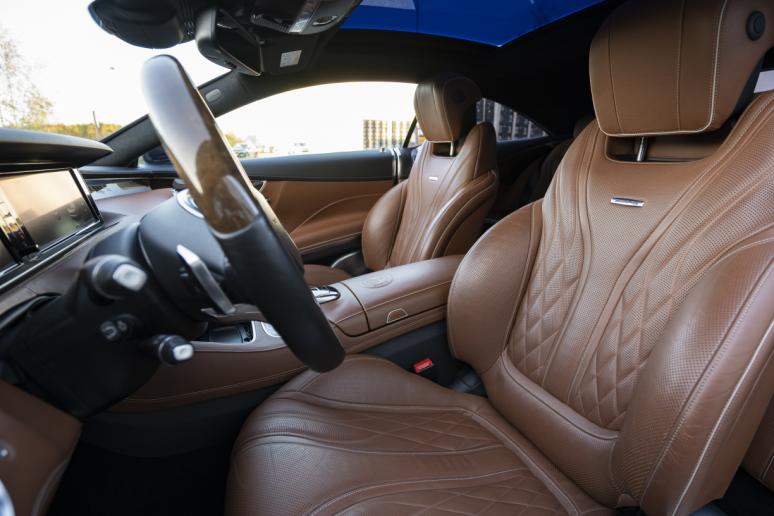 - Wij stellen u graag voor deze erg chique Mercedes-Benz S63 AMG 4-matic Coupe. In het Cavansiet blauw metallic met een Cognac Designo Nappa Exclusief lederen interieur. Een zeer mooie combo als u het ons vraagt!